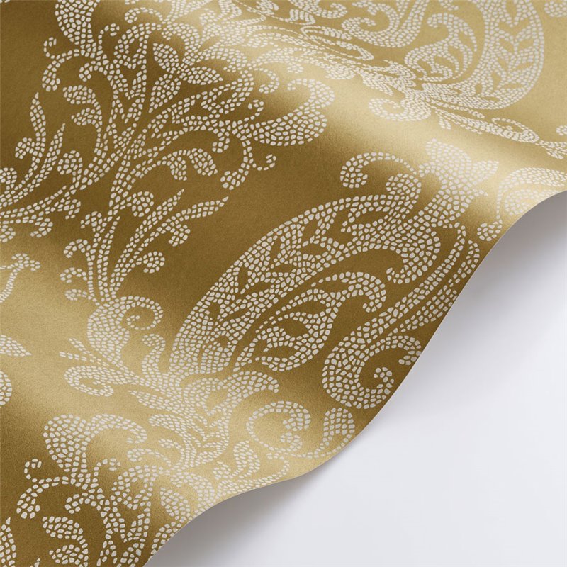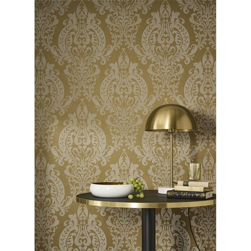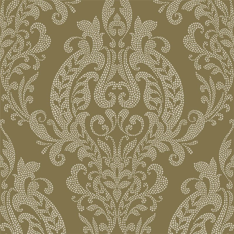 Un papel pintado damasco marrón de estilo clásico, perfecto para salón.