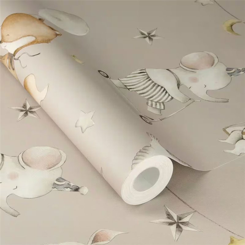 Papel pintado infantil circo gris acuarela