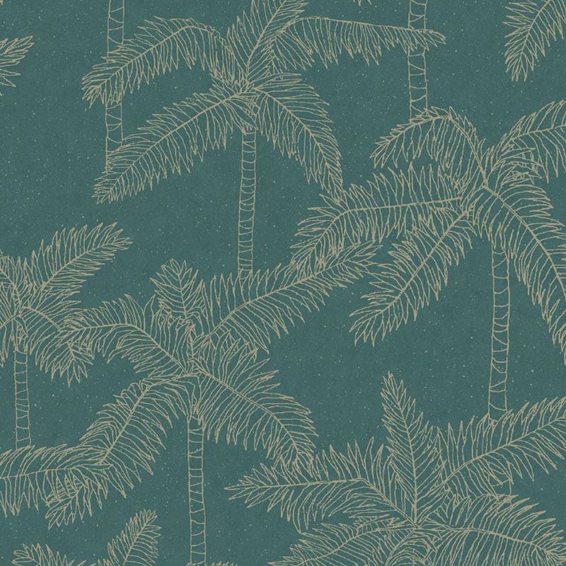 Papier peint palmiers tropical moderne 384515 d’Eijffinger, collection Vivid. Dimensions du rouleau : 52 cm x 10 m. Revêtement mural intissé et lavable
