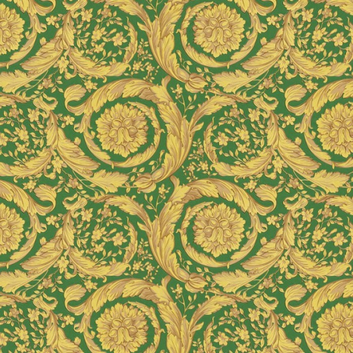 Papier peint ornemental texture métallisée dorée d´Versace haut de gamme, qualité vinyle et lavable. Dimensions : 70 cm x 10 m.