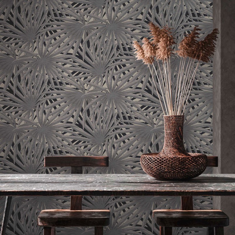 Papier Peint feuillu à motif floral gris et métallisé, Style décoratif qui s'adapte à différents espaces de la maison. As Creation Metropolitan Stories 378612.