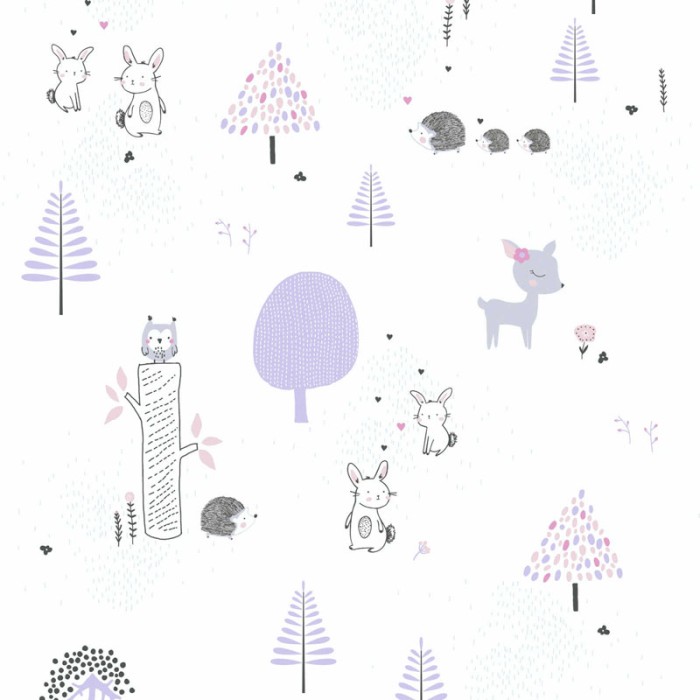 Papeldecor|Papier Peint enfant animaux forêt blanc et lilas|Papier Peint Papeldecor|Papier Peint enfant animaux forêt blanc et lilas|Papier Peint