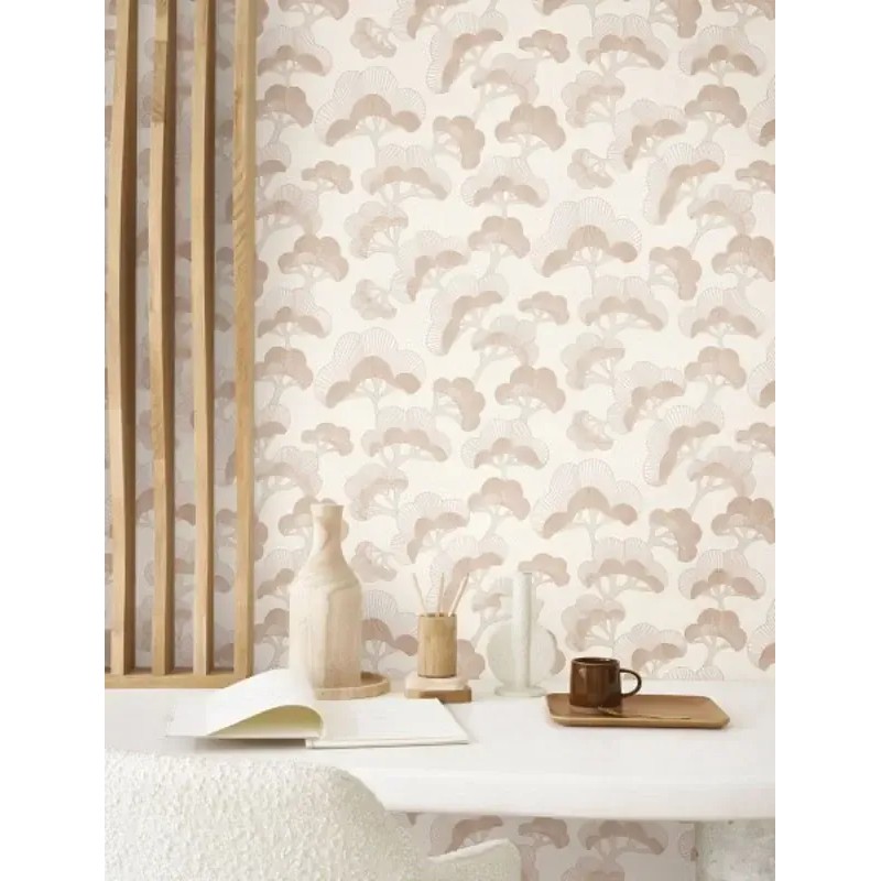 Papier peint fleurs japonaises modernes avec pins japonais effet brillant, un papier peint polyvalent pour décorer avec goût n’importe quelle pièce.