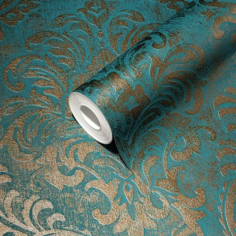 Papier Peint style damas vert et or, Idéal pour donner un air renouvelé et élégant à vos murs. As Creation Metropolitan Stories 391125.