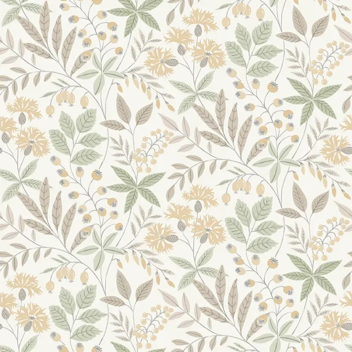 Papier peint fleurs baies multicolores d´Borastapeter, collection Borosan Hem. Qualité intissé et lavable, dimensions : 53 cm x 11,2 m.