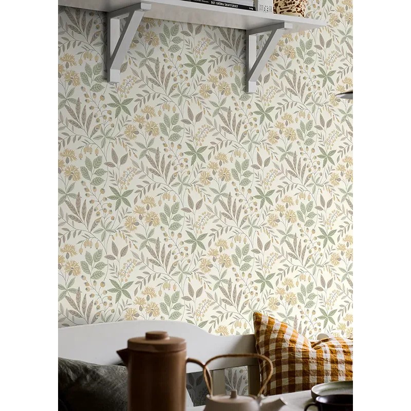 Papier peint romantique design floral années 30 beige multicolore d´Borastapeter, collection Borosan Hem. Qualité intissé et lavable, dimensions : 53 cm x 11,2 m.