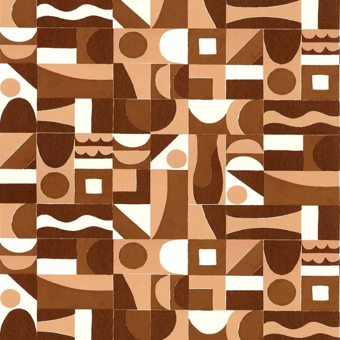 Papier peint composition géométrique brun clair d´Casamance, collection Bord du Nil. Qualité vinyle lavable, dimensions : 106 cm x 10 m.