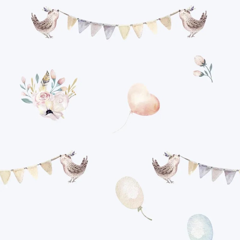 Parfait pour créer des atmosphères uniques, papier Peint enfant blanc ballons et guirlandes aquarelle Marburg Kids Walls 45887.