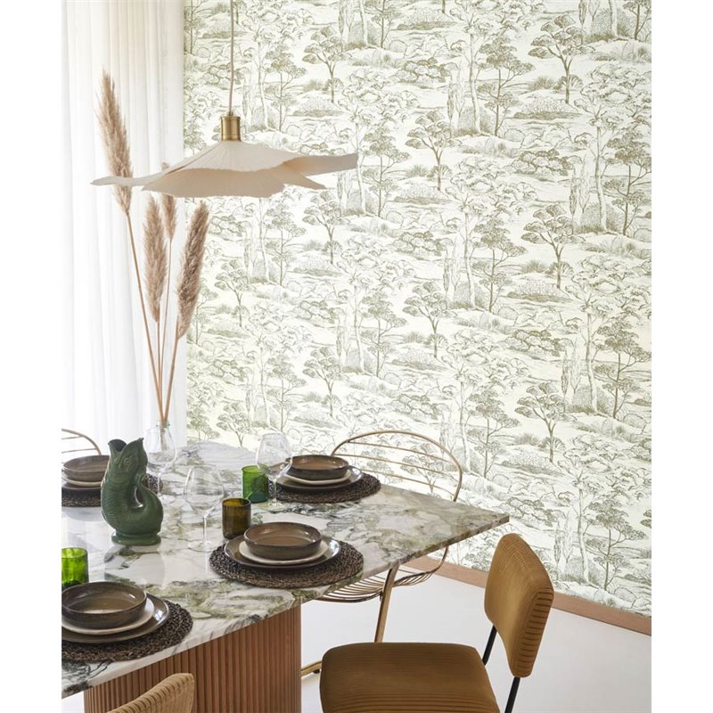 Papier peint style méditerranéen avec paysage de pins. Pins naturels pour un salon au charme méditerranéen.