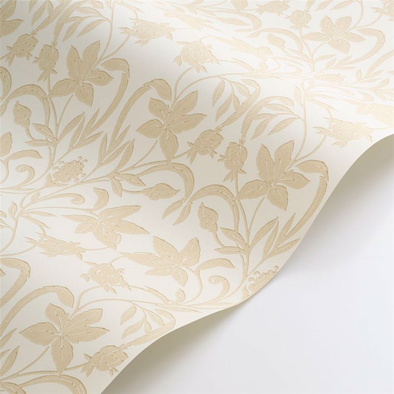 Papier peint floral classique beige et noir. Raffiné pour une salle à manger intime.