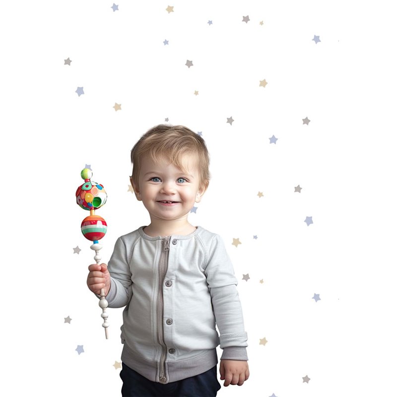 Ce papier Peint pour enfants avec des petites étoiles en doré et gris apporte de la lumière et une touche de magie à la chambre. Papier Peint petites étoiles doré et gris – Cristiana Masi MiniMe 17161.