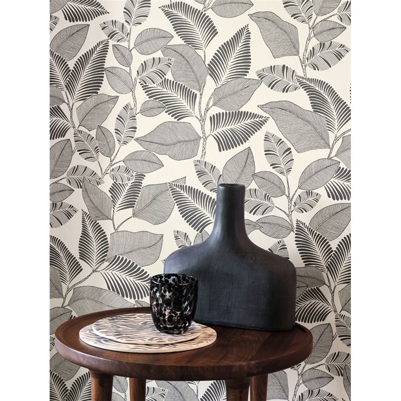 Papier peint Paraty de Casadeco avec un élégant motif floral inspiré de la luxuriante nature brésilienne, sublimé par un léger éclat irisé qui apporte fraîcheur et charme naturel à la pièce.