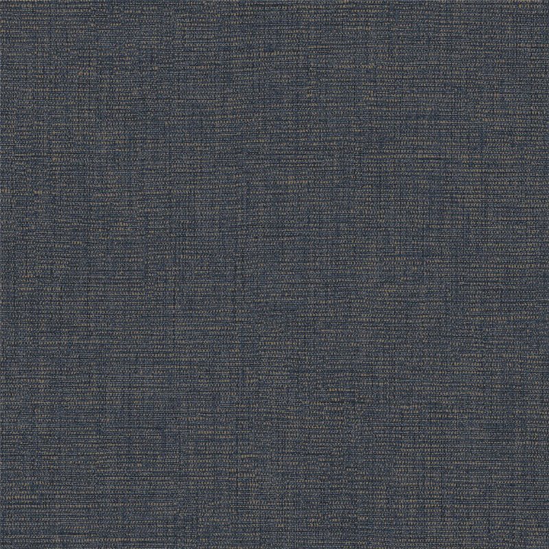 Papier peint Caractère de Casadeco en bleu encre, avec un élégant effet lin chiné qui offre harmonie, confort et une atmosphère intemporelle.