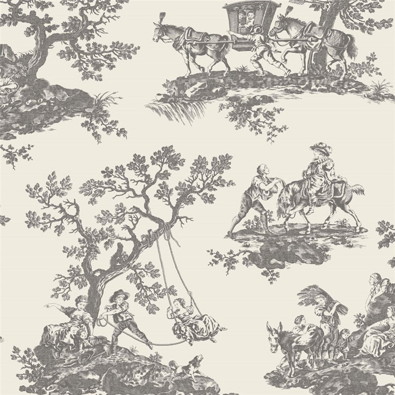 Papier peint Toile de Jouy classique blanc noir - Casadeco Les Belles Toiles de Jouy 201699310