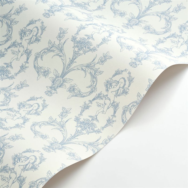 Papier peint Séraphin de Casadeco, un décor délicat où de gracieux angelots virevoltent parmi des arabesques végétales ; un motif à la fois dynamique et poétique qui apporte charme et légèreté aux intérieurs.