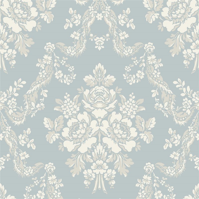 Le papier peint POMPADOUR de Casadeco déploie ses guirlandes baroques sur un fond bleu doux qui apporte fraîcheur et sérénité à l'ensemble ornemental. Les compositions florales et les détails végétaux s'équilibrent avec harmonie, rappelant la décoration classique des maisons de maître avec une perspective contemporaine. Un design idéal pour créer des ambiances élégantes et équilibrées avec une inspiration historique.