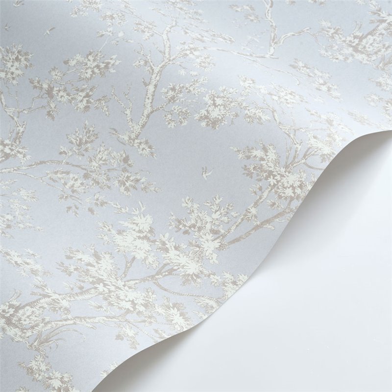 Papier peint scandinave arbres bleu beige - Casadeco Les Belles Toiles de Jouy 81526106