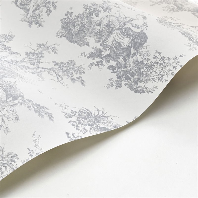 Le papier peint SCÈNE D’ÉTÉ de Casadeco réinvente le Toile de Jouy avec des fonds colorés et un trait modernisé, équilibrant contraste et délicatesse. En gris perle, le design devient sophistiqué et facile à intégrer, parfait pour les intérieurs contemporains qui souhaitent un clin d'œil classique réinterprété avec discrétion.