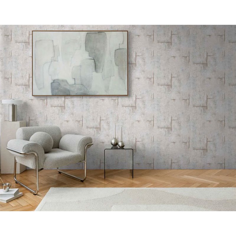 Papier peint industriel effet béton gris pour le salon, avec une finition mate et une texture subtile, idéal pour créer des intérieurs urbains contemporains.