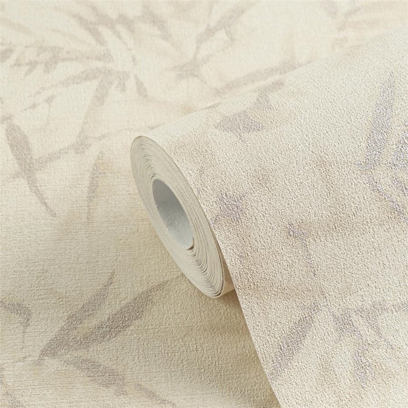 Composition de feuilles de bambou de style oriental en beige, un papier peint élégant pour le salon qui favorise le calme et l’équilibre visuel.