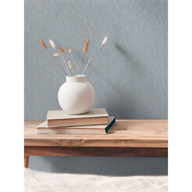 Motif scandinave à chevron en bleu, un papier peint pour la chambre apportant fraîcheur et une touche de couleur élégante. Papier peint intissé, rouleau de 53 cm x 10 m.