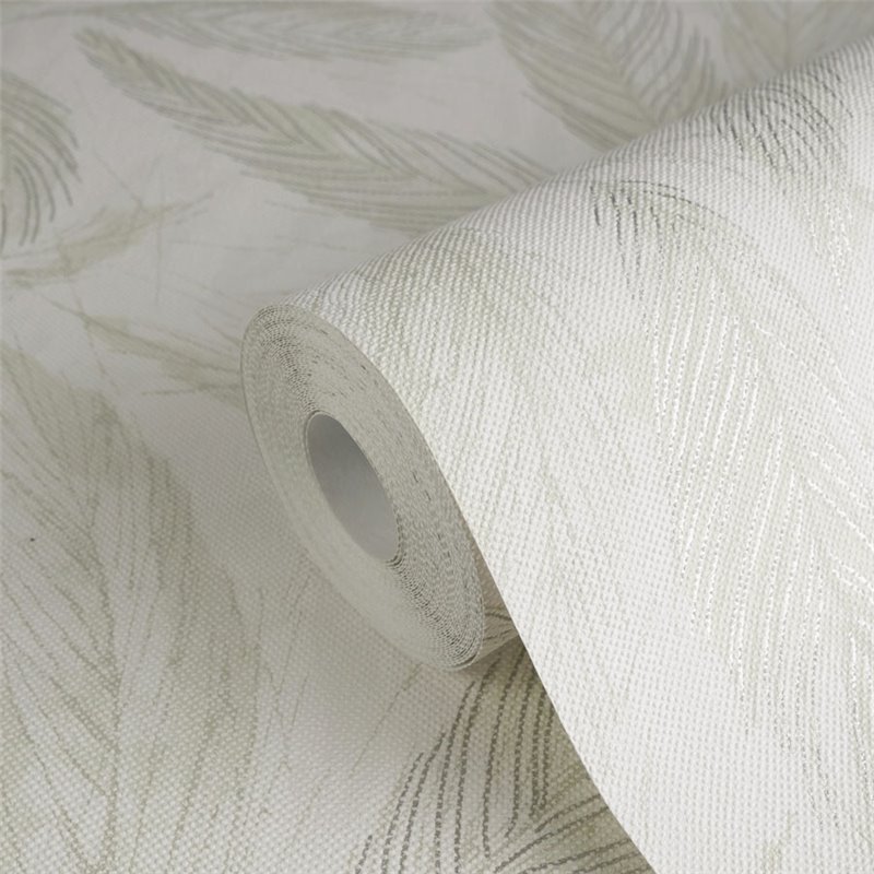 Motif nordique de grandes feuilles en blanc et argent, un papier peint idéal pour le salon à l’esthétique lumineuse et élégante. Papier peint intissé, rouleau de 53 cm x 10 m.