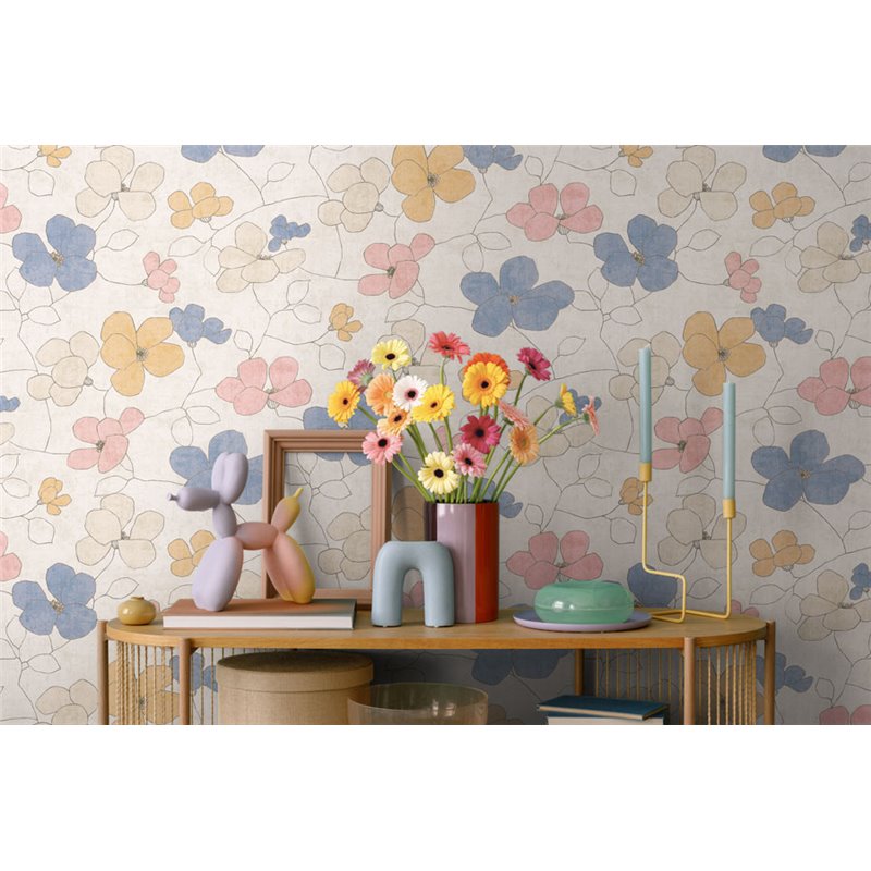 Des tons pastel et une esthétique nordique florale minimaliste font de ce papier peint une proposition délicate et accueillante pour boutique.