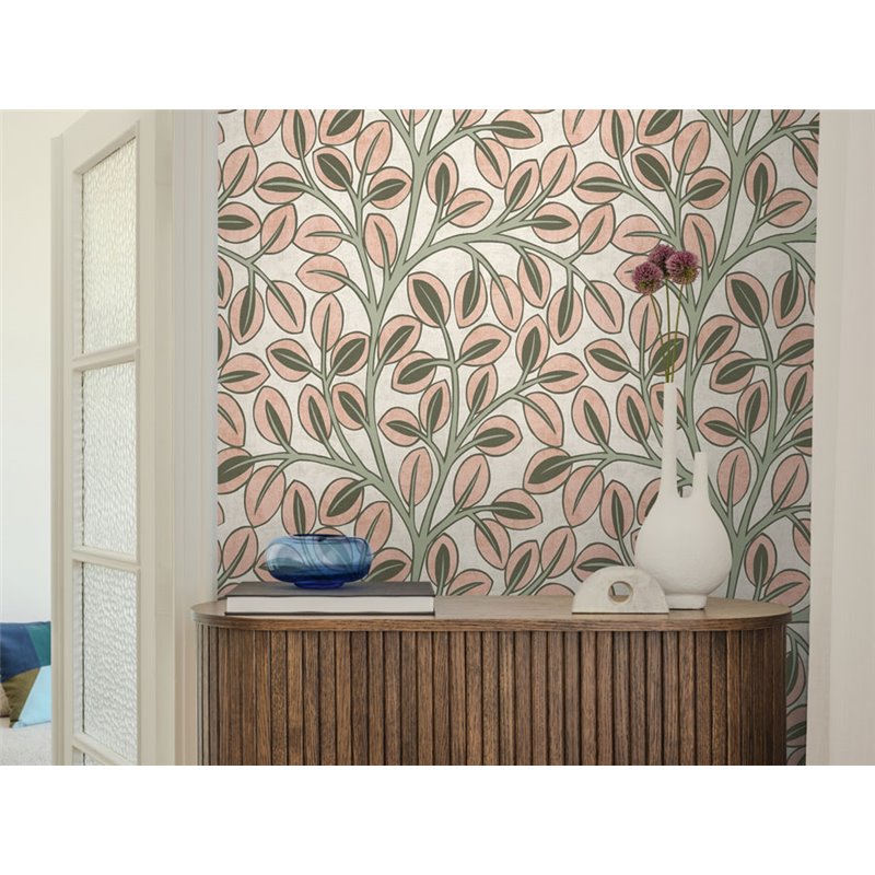 Un design rétro vintage floral en rose apporte à ce papier peint une touche décorative nostalgique et élégante.