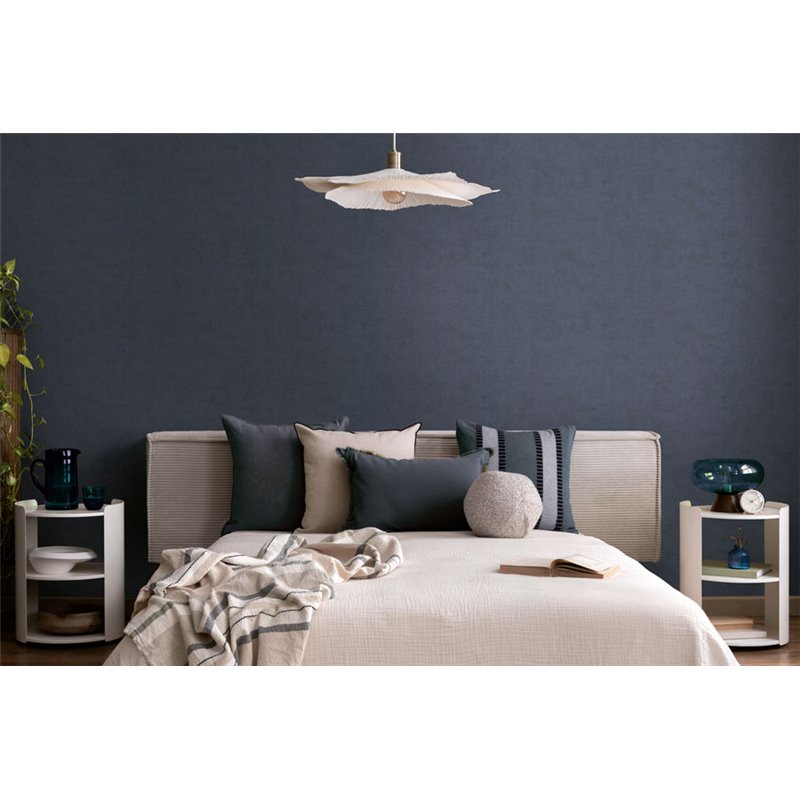 Une teinte bleu foncé et un effet stucco donnent à ce papier peint caractère et élégance, idéal pour la chambre.