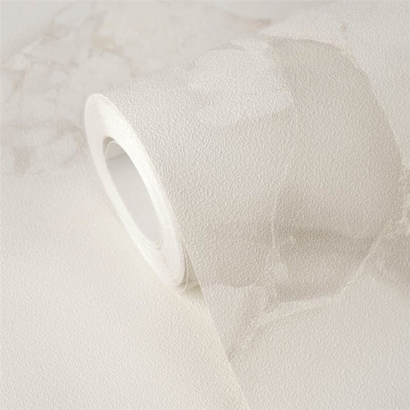 Un effet marbre beige crée un fond lumineux et intemporel, faisant de ce papier peint une option idéale pour la salle de bain.