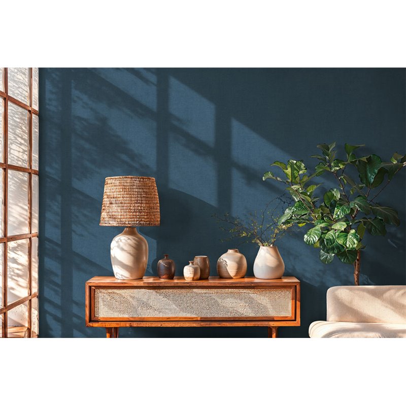 Un ton bleu et une texture unie créent une atmosphère calme et équilibrée grâce à ce papier peint.