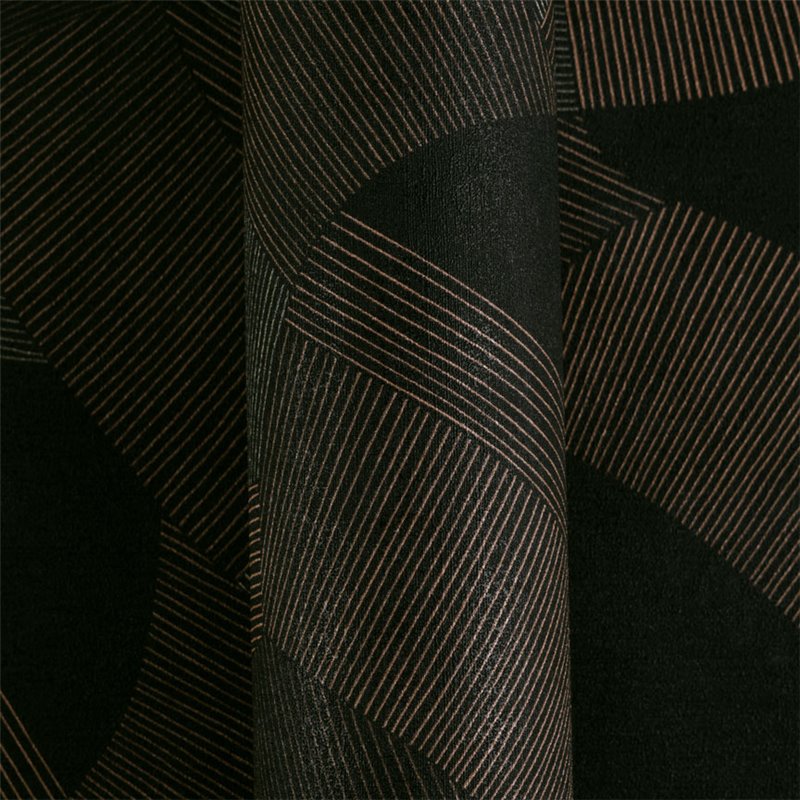Un motif géométrique moderne noir métallisé apporte caractère et élégance à ce papier peint, particulièrement adapté à la chambre.