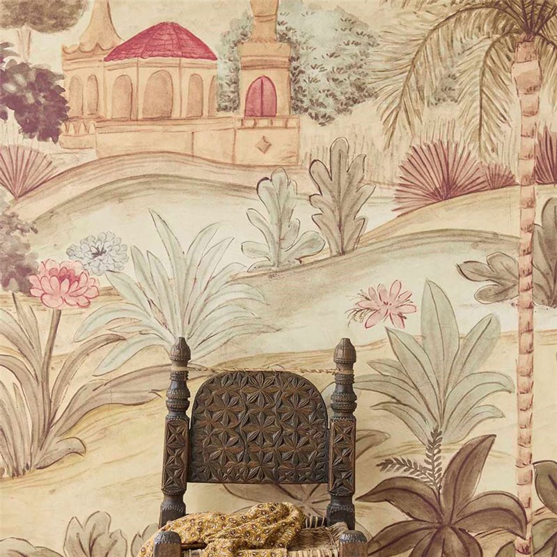 Papier peint panoramique paysage oriental avec jardin palacieux inspiré d’un jardin palacieux majestueux, formé de 8 lés ou panneaux.