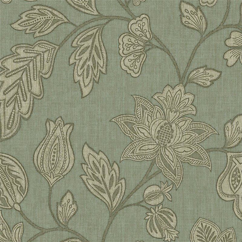 Papier peint vintage élégant à grandes fleurs vert