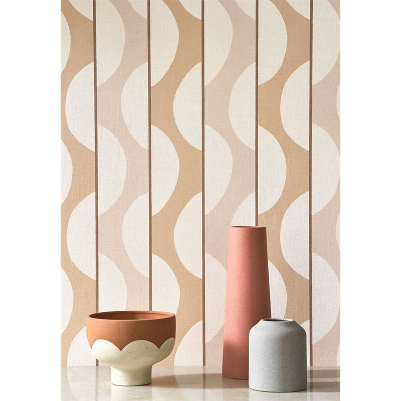 Papier peint rayures courbes rose nude scandinave alternant lignes et courbes dans un jeu visuel fluide, idéal pour apporter douceur et mouvement.